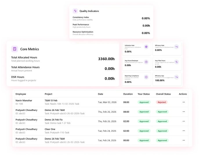 Empower employees to log their daily work while giving team leads, HR, and leadership the visibility they need — from attendance gaps to productivity patterns.