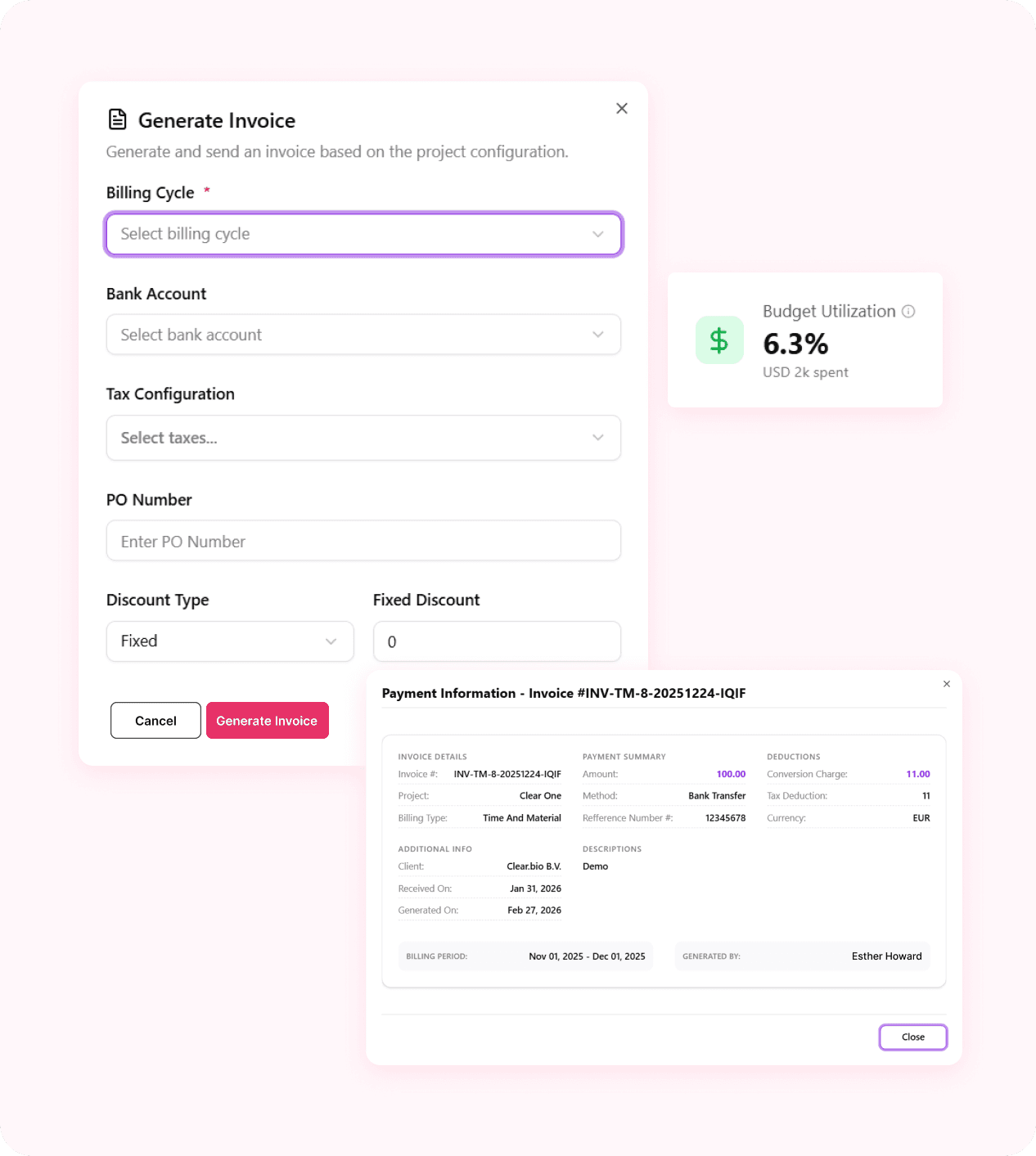 Simplify your billing process with automated, accurate, and customizable invoicing. Whether you're billing clients, tracking payments, or reconciling project costs, this feature ensures transparency, speed, and control across your financial workflows.